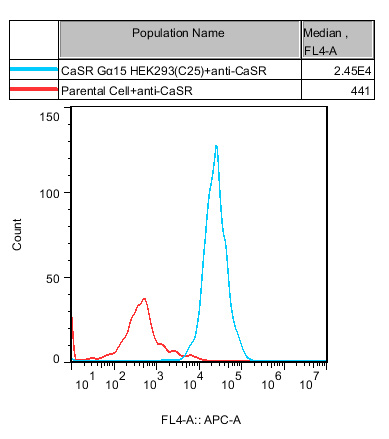 CaSR Gα15 HEK293 藥靶模型很好的模擬了體內 CaSR 的信號轉導過程,原理見下圖所示。![]() Figure 1. CaSR Gα15 HEK293 細胞模型原理圖 |
