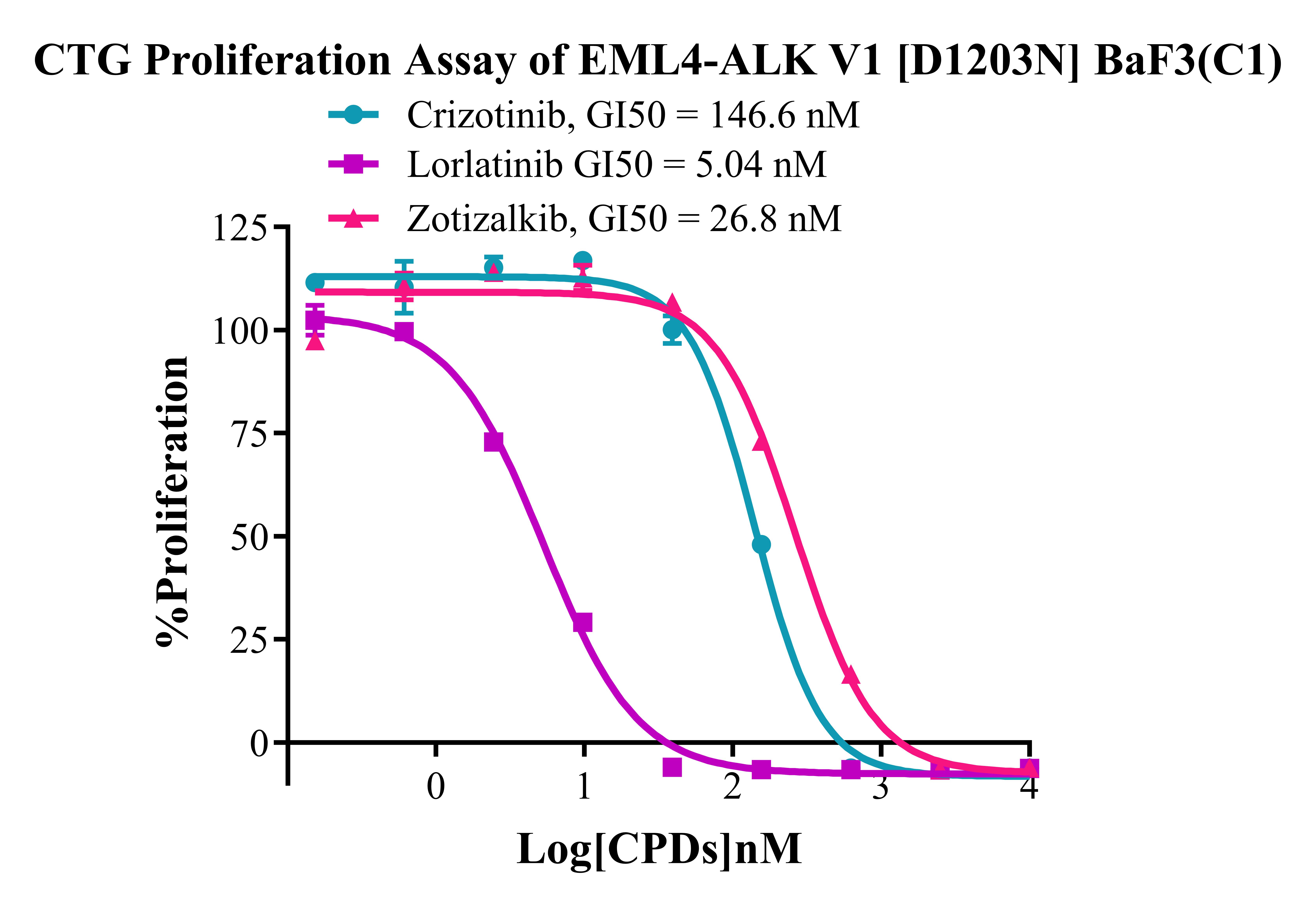 Figure 4. CTG Proliferation Assay of EML4-ALK V1 [D1203N] BaF3(C1). |